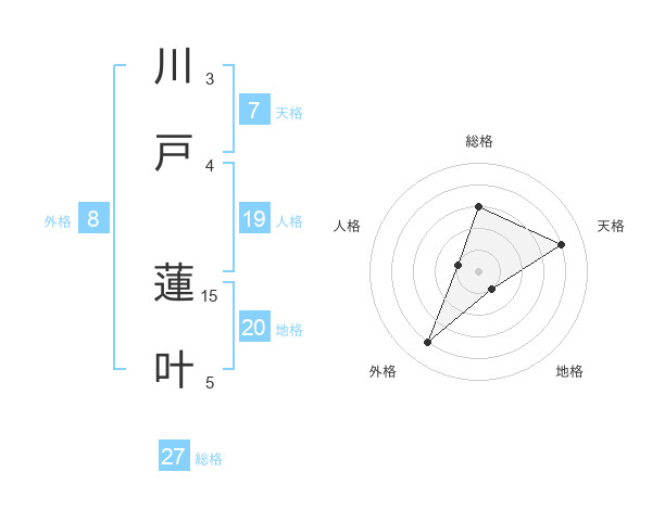 川戸 蓮叶さんの総格は27画の3点!