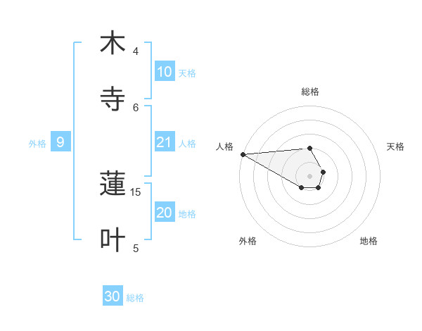 木寺 蓮叶さんを姓名の画数から五運を鑑定