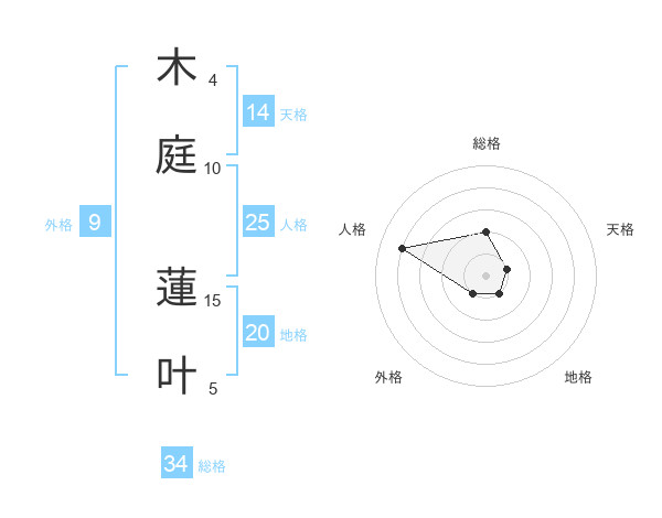 木庭 蓮叶さんの総格は34画の2点!
