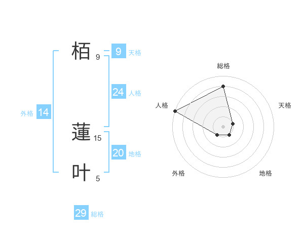 栢 蓮叶さんの総格は29画の4点!