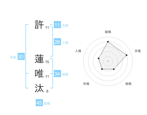 許 蓮唯汰さんの総格は45画の4点!