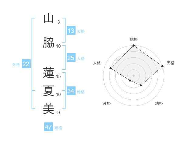 山脇 蓮夏美さんを姓名の画数から五運を鑑定