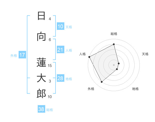 日向 蓮大郎さんを姓名の画数から五運を鑑定