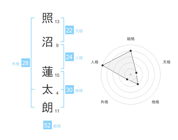 照沼 蓮太朗さんの総格は52画の4点!