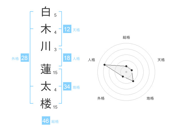 白木川 蓮太楼さんを姓名の画数から五運を鑑定
