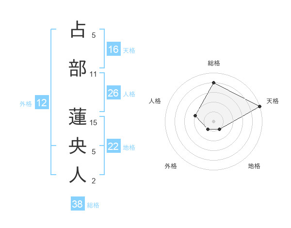占部 蓮央人さんの総格は38画の4点!