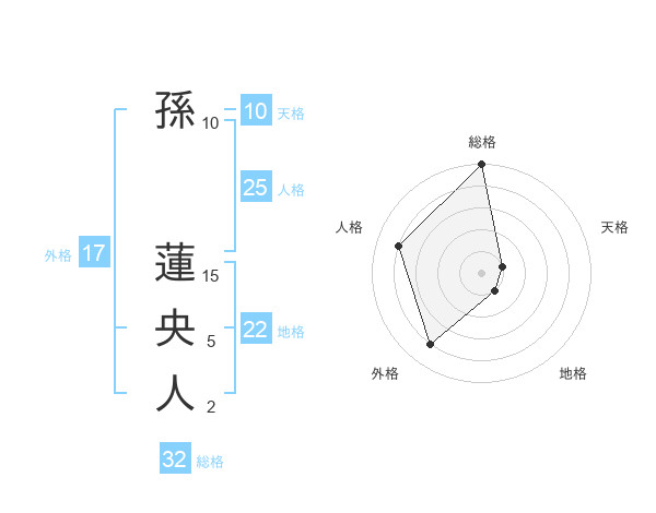 孫 蓮央人さんの総格は32画の5点!