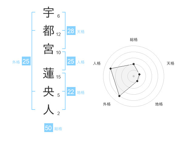 宇都宮 蓮央人さんの総格は50画の2点!