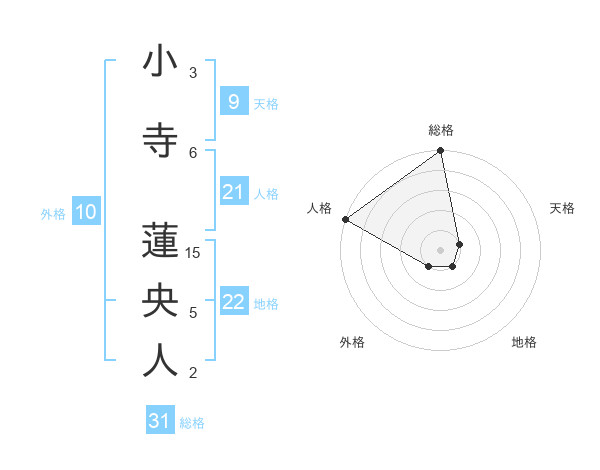 小寺 蓮央人さんを姓名の画数から五運を鑑定