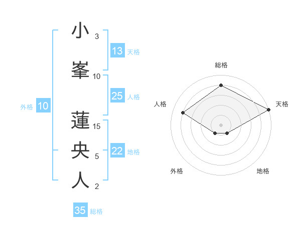 小峯 蓮央人さんを姓名の画数から五運を鑑定