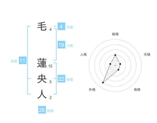 毛 蓮央人さんを姓名の画数から五運を鑑定