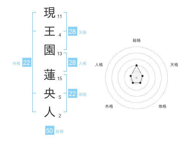 現王園 蓮央人さんを姓名の画数から五運を鑑定