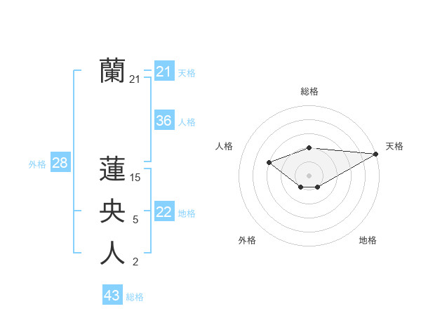 蘭 蓮央人さんの天格は21画の5点!