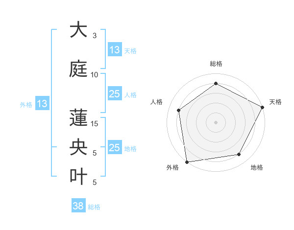 大庭 蓮央叶さんを姓名の画数から五運を鑑定
