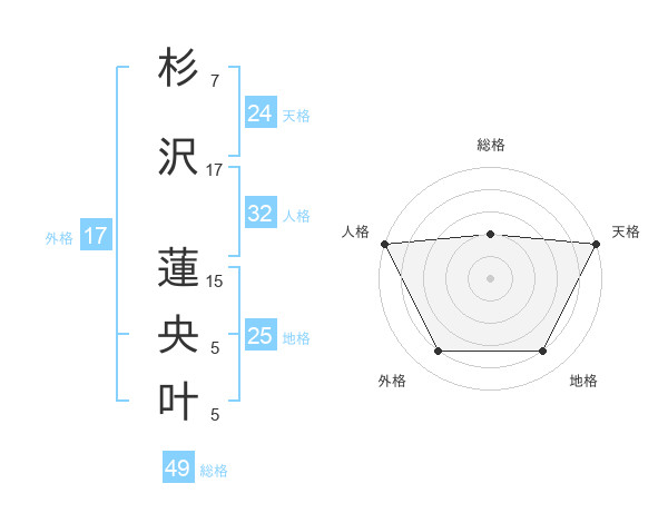 杉沢 蓮央叶さんの天格は24画の5点!