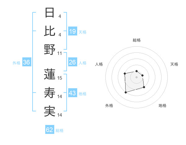 日比野 蓮寿実さんを姓名の画数から五運を鑑定