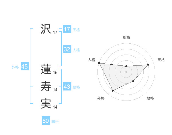 沢 蓮寿実さんの天格は17画の4点!