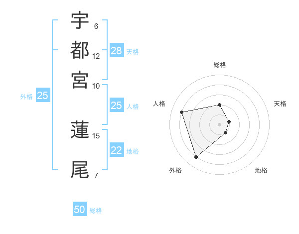 宇都宮 蓮尾さんを姓名の画数から五運を鑑定