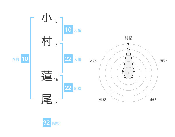 小村 蓮尾さんの総格は32画の5点!