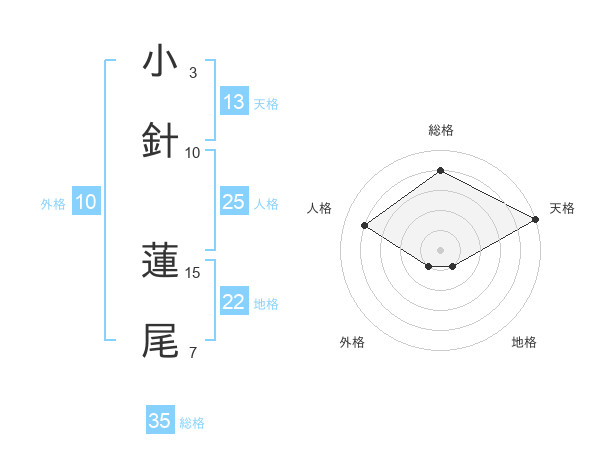 小針 蓮尾さんの総格は35画の4点!