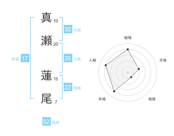 真瀬 蓮尾さんの総格は52画の4点!