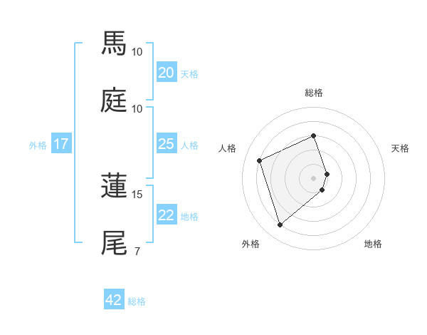 馬庭 蓮尾さんを姓名の画数から五運を鑑定