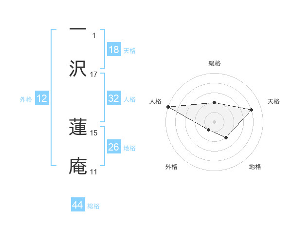 一沢 蓮庵さんの総格は44画の2点!