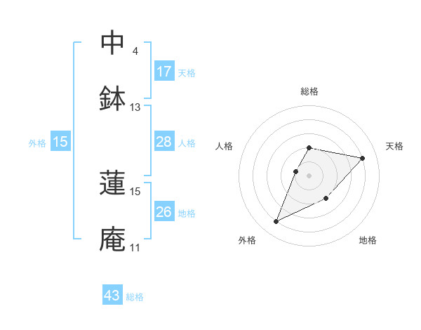 中鉢 蓮庵さんの天格は17画の4点!