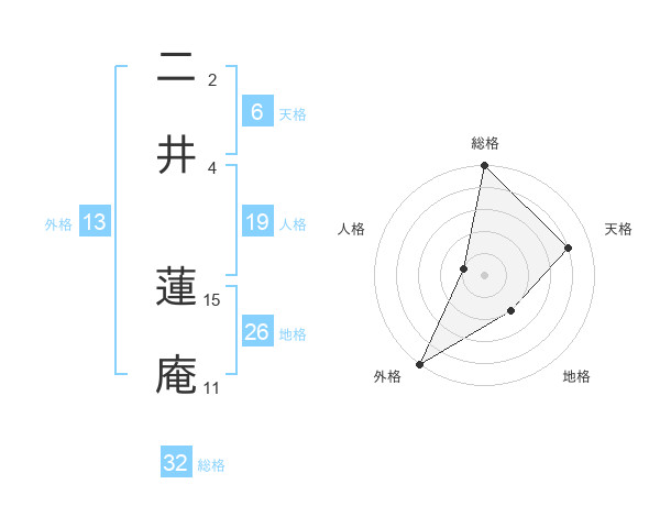 二井 蓮庵さんの総格は32画の5点!