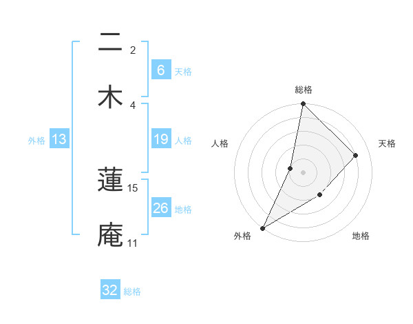 二木 蓮庵さんを姓名の画数から五運を鑑定