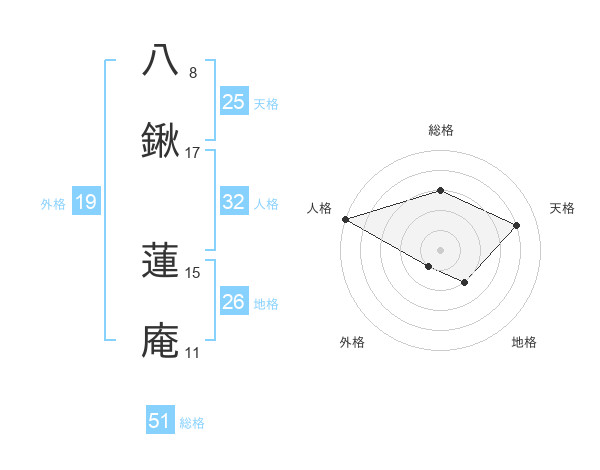 八鍬 蓮庵さんの総格は51画の3点!