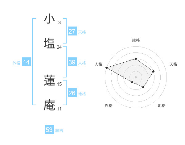 小塩 蓮庵さんの総格は53画の3点!