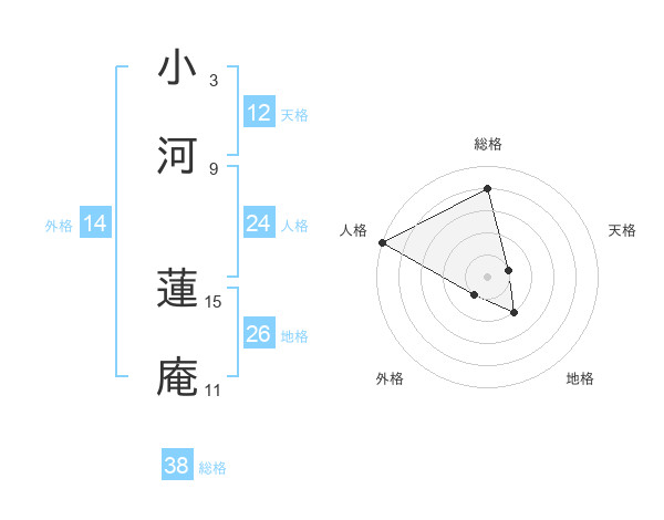 小河 蓮庵さんの総格は38画の4点!