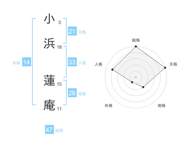 小浜 蓮庵さんの総格は47画の5点!