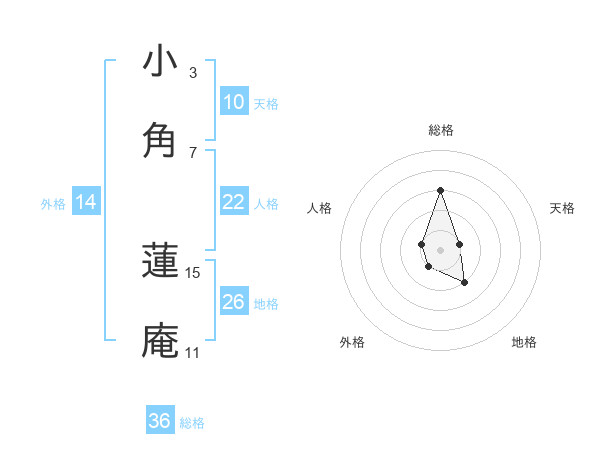小角 蓮庵さんの総格は36画の3点!