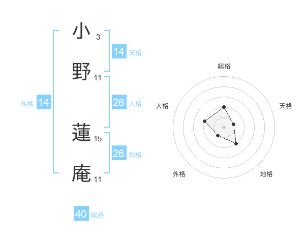 小野 蓮庵さんを姓名の画数から五運を鑑定