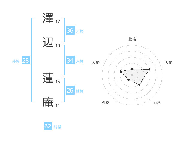 澤辺 蓮庵さんの総格は62画の1点!