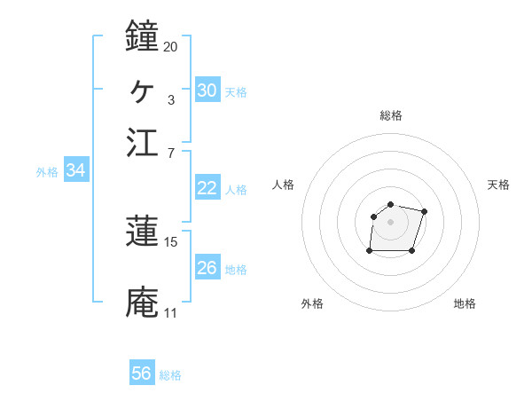 鐘ヶ江 蓮庵さんの総格は56画の1点