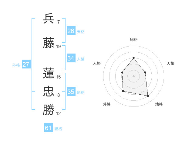 兵藤 蓮忠勝さんの総格は61画の3点!