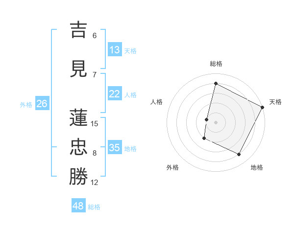 吉見 蓮忠勝さんの総格は48画の4点!
