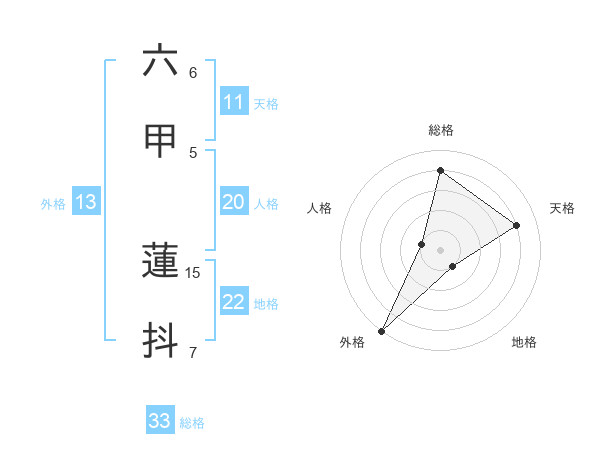 六甲 蓮抖さんの総格は33画の4点!