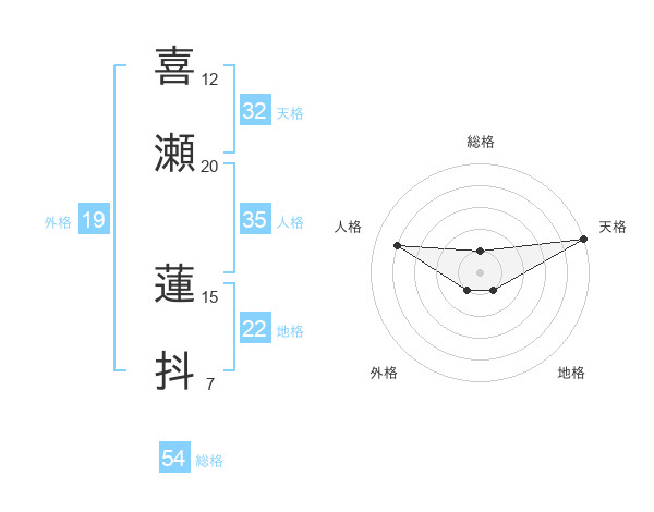 喜瀬 蓮抖さんを姓名の画数から五運を鑑定