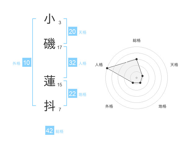 小磯 蓮抖さんの総格は42画の3点!