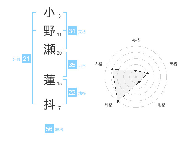 小野瀬 蓮抖さんを姓名の画数から五運を鑑定