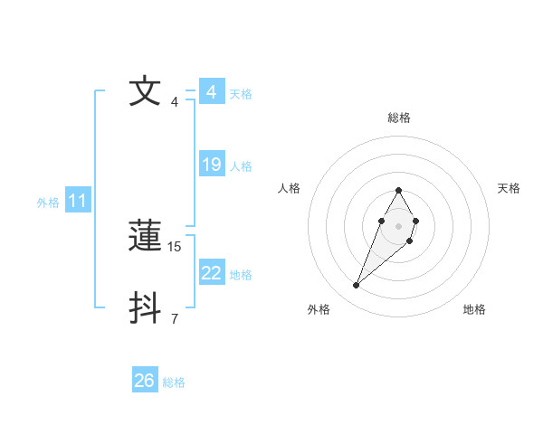 文 蓮抖さんを姓名の画数から五運を鑑定