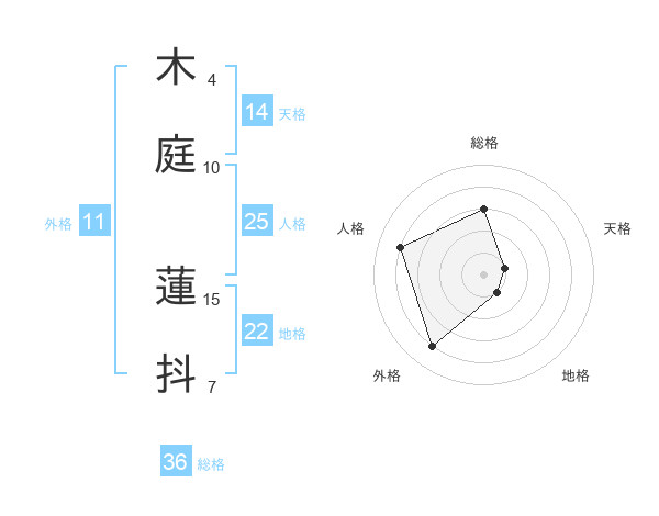 木庭 蓮抖さんの総格は36画の3点!