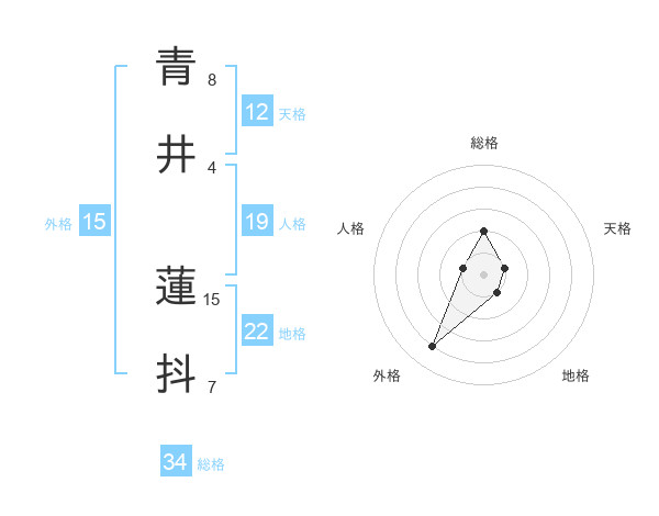 青井 蓮抖さんの総格は34画の2点!