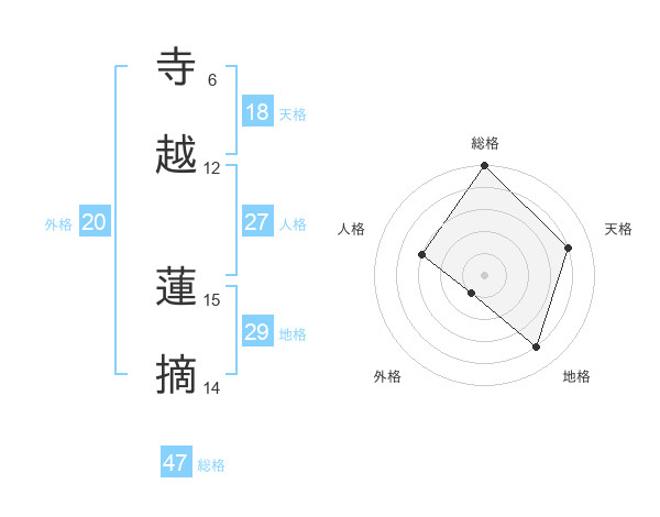 寺越 蓮摘さんを姓名の画数から五運を鑑定
