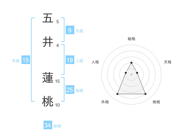 五井 蓮桃さんの総格は34画の2点!