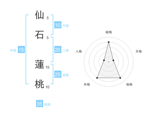 仙石 蓮桃さんの総格は35画の4点!